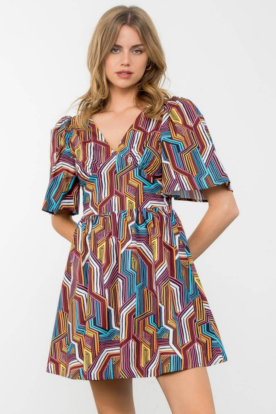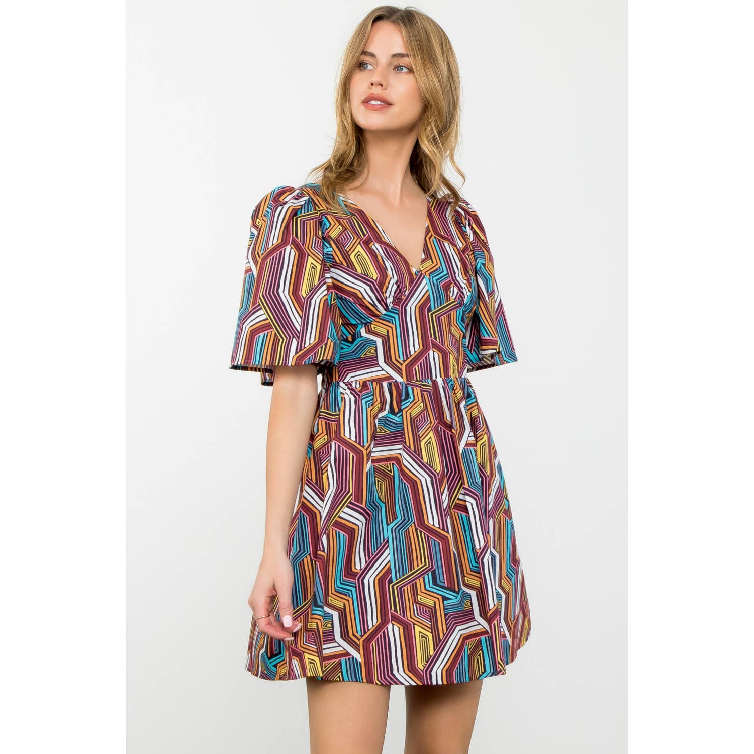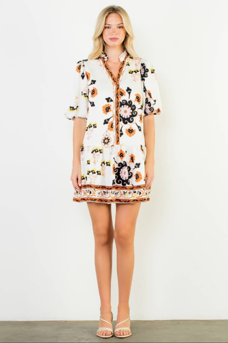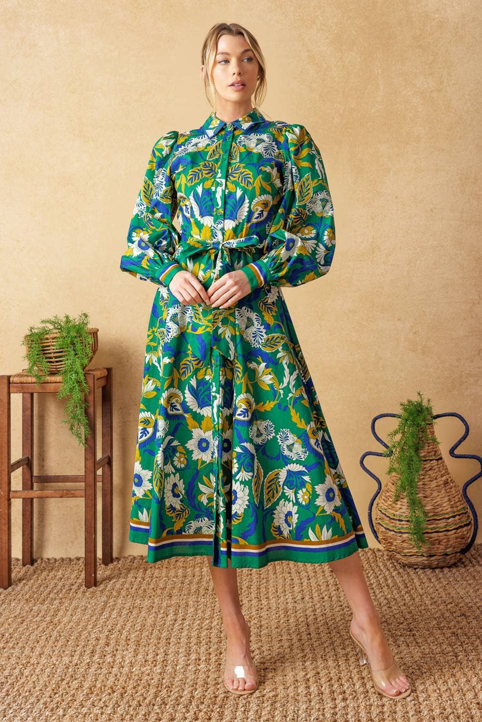 Smocked Puff Sleeve Print Maxi Dress - Mustard