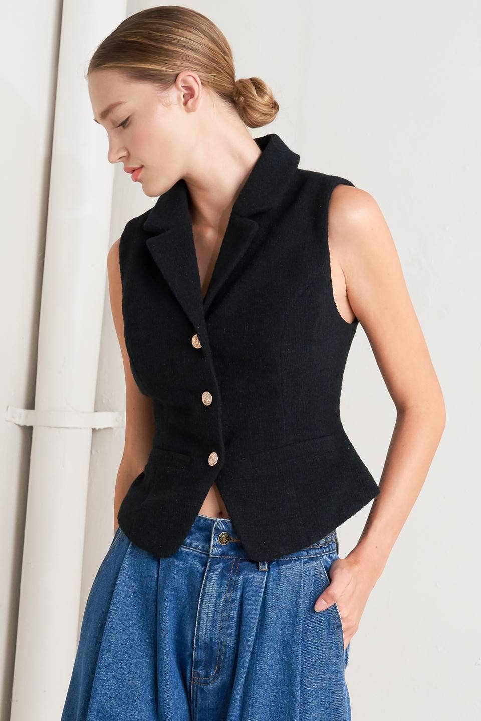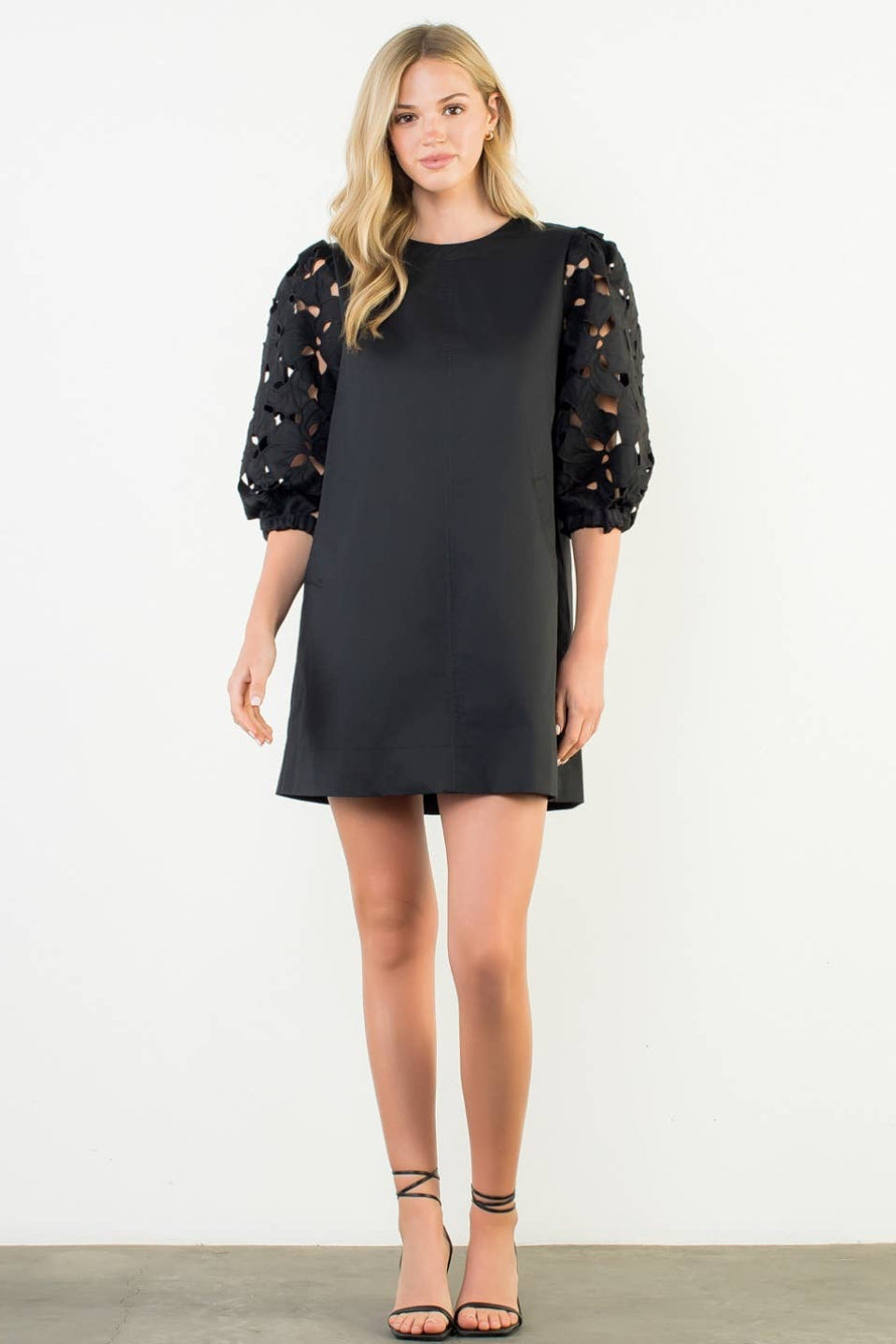 Black Long Sleeve Knit Top with Faux Leather Detail - Black