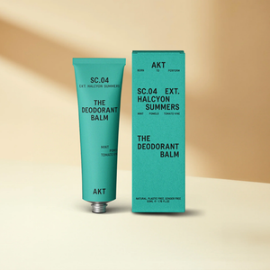 Experience all-day freshness with our multi-award-winning AKT Deodorant Balm. Infused with AKT's proprietary DEO-BARRIER COMPLEX™, this revolutionary formula transforms from a nourishing balm into a dry, invisible powder—actively cleansing, deodorizing, and absorbing perspiration without blocking pores. Stay confident and fresh without compromising comfort. • Effective All-Day Protection: Enriched with premium botanicals and DEO-BARRIER COMPLEX™ to keep you feeling dry and confident. • Gentle and Safe: Vegan, cruelty-free, and aluminum-free — ideal for sensitive skin. • Fast-Absorbing Formula: Moisturizing deodorant balm absorbs instantly with no mess. • Garment-Friendly: Leaves no stains, extending the life of your clothing. • Eco-Friendly Packaging: 100% plastic-free and recyclable. Long-Lasting: One tube lasts 6–8 weeks with daily application. Scent: SC.04 - Halycon Summers - Mint, Pomelo, Tomato Vine Size: 50 ml / 1.76 fl. oz Plastic-Free | Recyclable | Vegan | Cruelty-Free