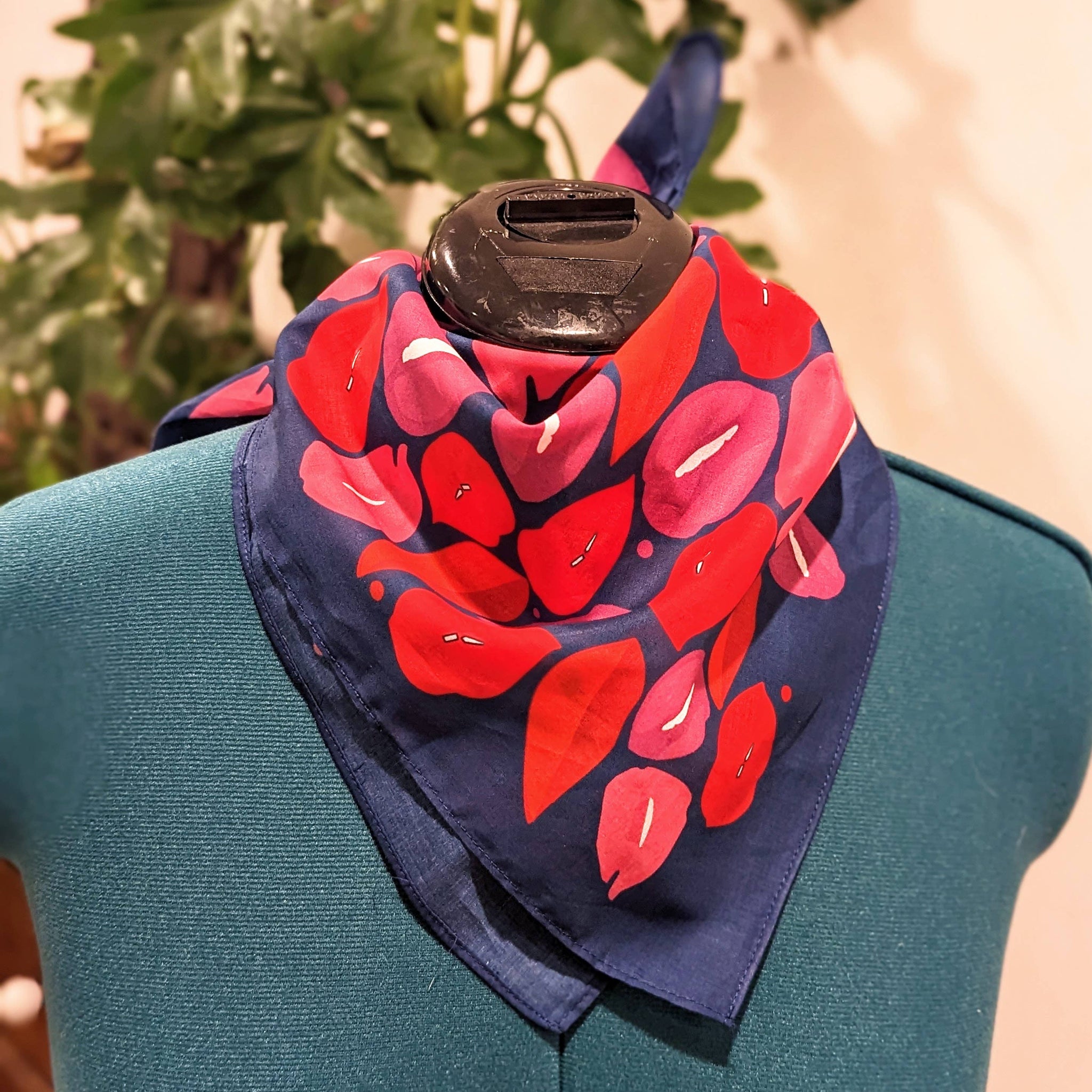 It's juicy! 100% Cotton. 23" x  23". Designed in Washington DC. Limited edition. *Comes packaged with a paper bellyband and in a cellophane sleeve. The sleeve is biodegradable. Please let me know if you would prefer your bandanas shipped without the cellophane sleeve.