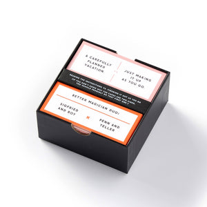 Win points for winning arguments. This social game by Brass Monkey includes 200 game cards, each featuring opposing views of hot button issues...like how to load the dishwasher like an actual human being. Just pick a side, and debate it out. There's no politics, religion, or any of that crap here. There are way more important things to fight about. For example: Those brownie edge pieces are garbage. Go ahead, prove us wrong. - Includes 200 things to argue about...not like you needed the help, dad. - Are hot dogs sandwiches? Is cereal a soup? Pick a side, then pick a fight. - Game instructions are provided - Each two-sided card measures 1.5" tall by 3.5" wide. - Box measures 4.1" square (by 2" deep if you're curious).