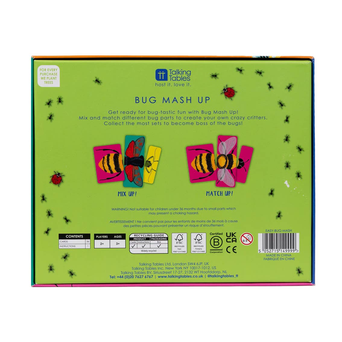 Insect inspired designs are trending in gifting and have now (creepy) crawled their way into games for spring/summer 24. Our Easy Peasy Family Fun Bug Mash Up Game can be played two separate ways. Mix-up the various bugtastic cards to create weird and wonderful new crazy critters. Ever wondered what a butterfly’s wings look like with a bee’s head. Now you don’t have to. Alternatively, you can play a game of Match-up, find all three matching cards to create one bug. Which bug will you find first? Collect the most sets to become boss of the bugs! Recommended for age: 3+ 2+ Players Pack size: 36 cards Box size: H 17.5cm x W 21cm x D 4cm Plastic free All of our games have been designed to be played over and over again. If a game does become unloved (it happens, inevitably kids grow out of things), we encourage donating it to a local charity shop or passing on to another family to enjoy.