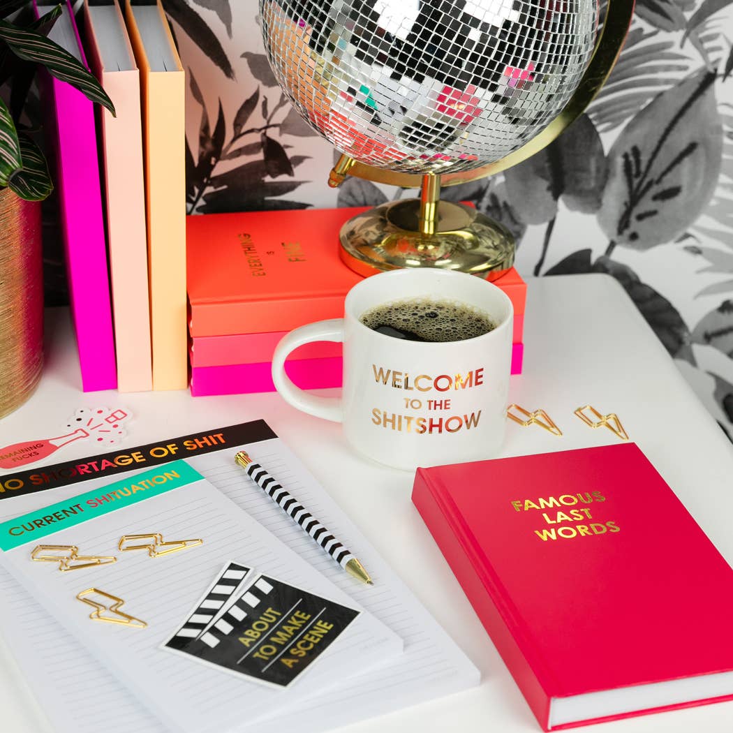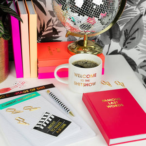 Prepare to be blown away by the sheer badassery of this hardcover journal. We're talking heavyweight paper that's so thick, it could double as body armor (not really, but you get the idea). Your pen will glide across the pages like a Ferrari on an open highway, leaving behind a trail of literary brilliance or horrific chicken scratch like ours. Our journal is packed with more lined pages than you can shake a thesaurus at. Jot down your most terrifying existential thoughts, plan your world domination, next startup business or doodle your way to artistic greatness. Write your heart out, babe! Hardcover is Gold Foil Printed 256 Lined Pages Dimensions: 5.25” x 8.25” White Page Marking Ribbon Imported