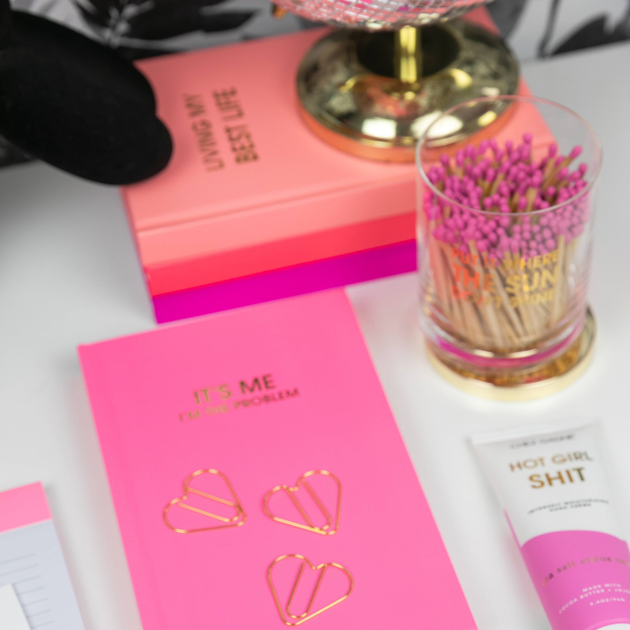 Prepare to be blown away by the sheer badassery of this hardcover journal. We're talking heavyweight paper that's so thick, it could double as body armor (not really, but you get the idea). Your pen will glide across the pages like a Ferrari on an open highway, leaving behind a trail of literary brilliance or horrific chicken scratch like ours. Our journal is packed with more lined pages than you can shake a thesaurus at. Jot down your most terrifying existential thoughts, plan your world domination, next startup business or doodle your way to artistic greatness. Write your heart out, babe! 256 paged Journal, pages are lined Cosmo Pink Cover is Gold Foil Printed 5.25" x 8.25" White Page Marking Ribbon