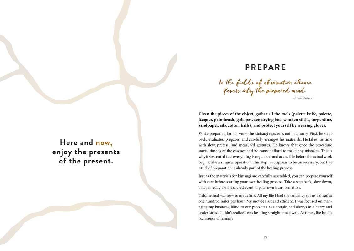 Kintsugi is the ancient Japanese art of repairing broken pottery with powdered gold. Day after day, week after week, stage by stage, the seemingly broken object is cleaned, groomed, treated, healed, and finally enhanced. Because of this approach, kintsugi has also become a well-known therapy metaphor to resilience.