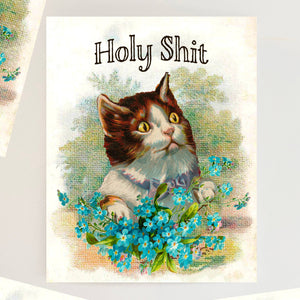 Kitty Cat Holy Shit Funny Card - Birthday Graduation Love