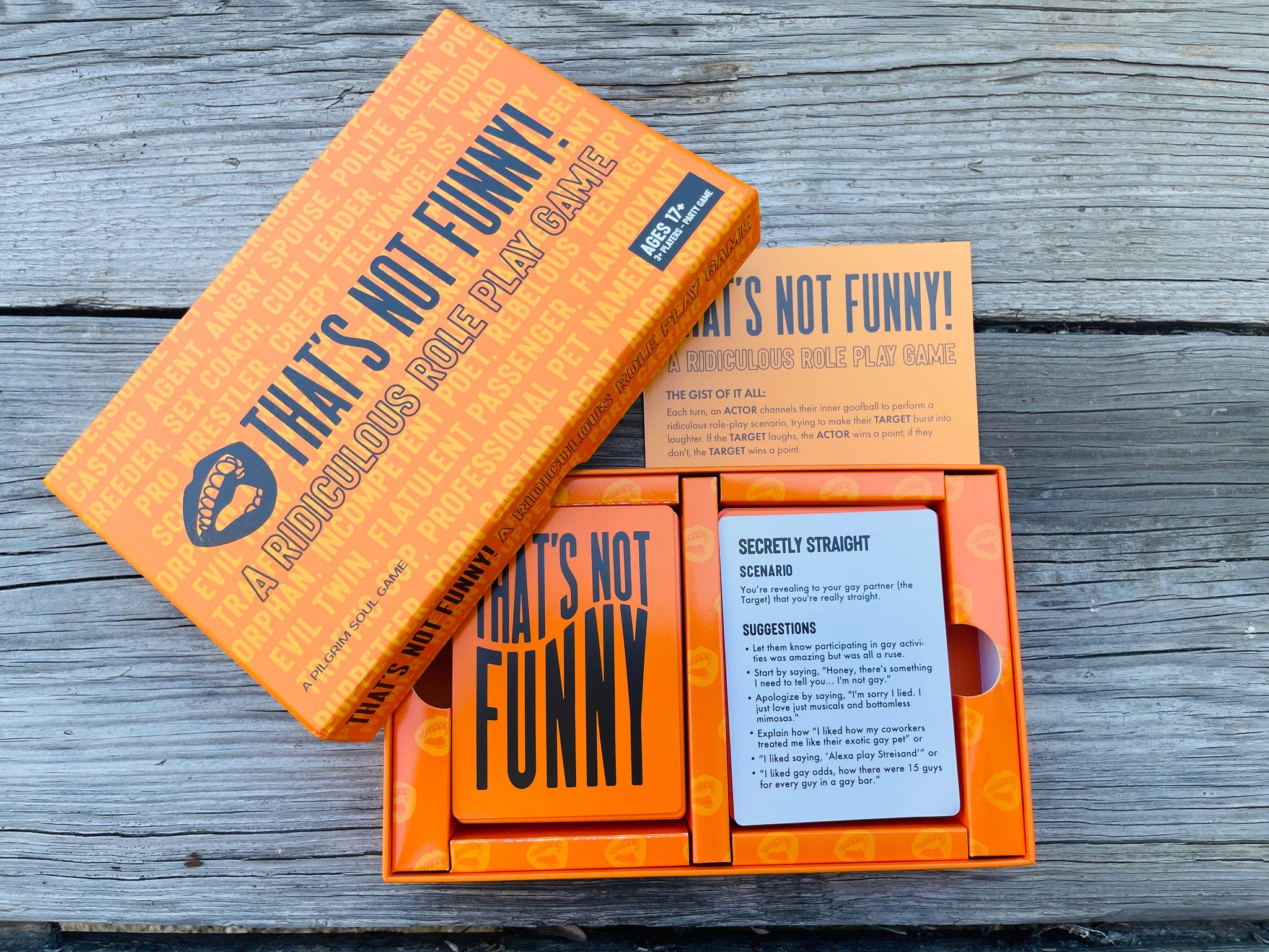 Designed for players aged 17 and up, "That's Not Funny" is perfect for game nights, parties, or whenever you need a hefty dose of laughter.
