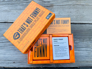 About The Game "That's Not Funny" is an uproarious, potentially offensive card game designed to maximize laughter with friends and test your ability to keep a straight face. The Concept: Get Your Friends to Laugh That's Not Funny is a party game that turns anyone's limited charisma and peculiar sense of humor into hours of shared laughter.