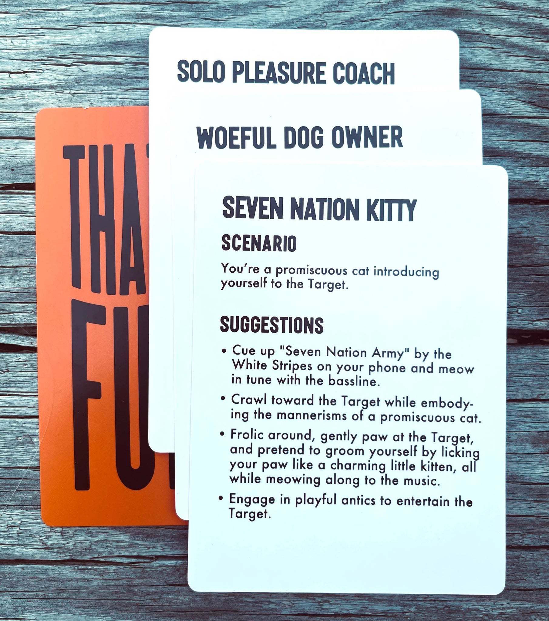 How to Play: Each turn, a player acts out a ridiculous role-play from a card in the deck and tries their best to make another player of their choosing crack up within 60 seconds. If the target laughs, the actor gets the point; if they don't, the target gets it. Meanwhile, everyone else in the room is cracking up.