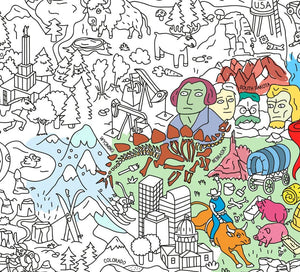 Discover the United States while coloring this giant map featuring well known monuments, landscapes, people, and much more! Hundreds of tiny details, and a huge sense of humor for the entire family to enjoy! Hours of coloring fun alone or with friends,use the poster as a tablecloth, wallpaper... The possibilities are endless! Details Content 1 giant poster Format Unfolded 70 x 100 cm / 27.5 x 39in Composition 100% paper Made and designed in France