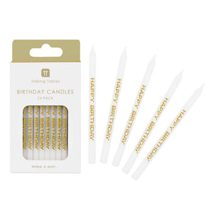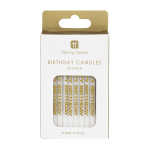 White & Gold 'Happy Birthday' Candles | 24 Pack |